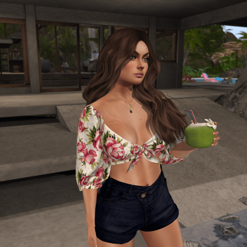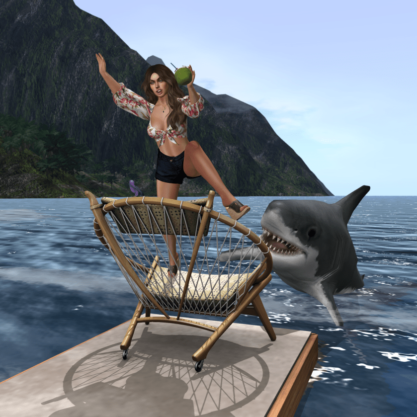 Outfit: PixiCat Coconut drink: Hive Chair: Trompe Loeil Purple Parrot: SEmotion Shark: JIAN ((Not sponsored by or affiliated with any of these))
